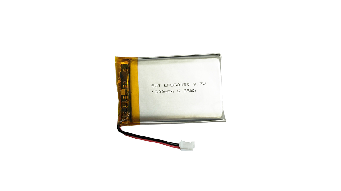 แบตเตอรี่ LP853450 3.7V 1500mAh ของ EWT ด้วยการออกแบบขนาดเล็ก ที่มาจากประเทศจีน เป็นแหล่งพลังงานที่หลากหลาย เหมาะสําหรับอุปกรณ์สวมใส่ อุปกรณ์ IoT และอิเล็กทรอนิกส์ขนาดเล็กIECสินค้านี้รับประกันความปลอดภัยและคุณภาพ โดยมีเซลล์พอลิเมอร์ลิเดียมที่มีความทันสมัย ส่งผลิต 3.7V ที่น่าเชื่อถือออกแบบให้ทํางานได้อย่างมั่นคงจาก -20°C ถึง 60°Cทําให้มันเหมาะสําหรับนาฬิกาฉลาด เครื่องติดตามความฟิตเนส และเซ็นเซอร์ขนาดเล็ก